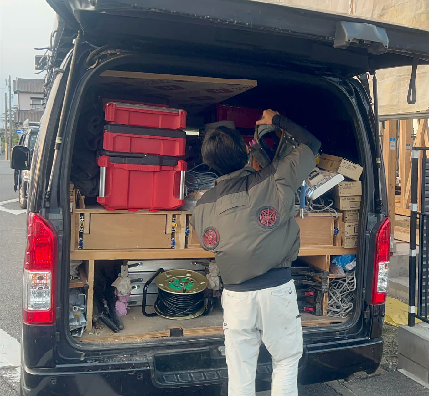 愛知県内の住宅やアパートをはじめとする現場で電気工事や空調工事を請け負い、